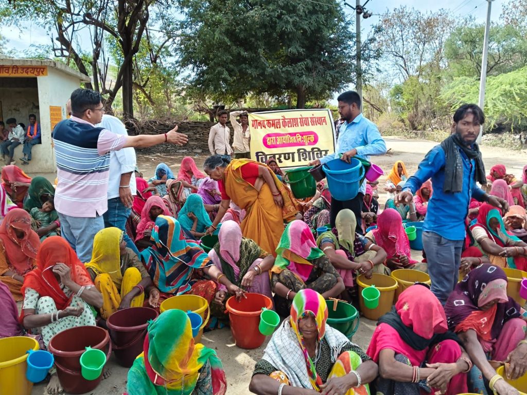 150 महिलाओं को दैनिक उपयोग हेतु बाल्टी एवं मग भेंट किए गए।