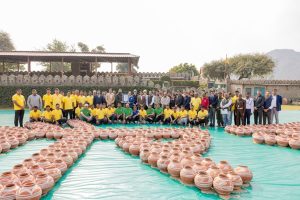 उदयपुर। शिकारबाड़ी में आयोजित एक प्रेरक एवं जनहितकारी पहल के तहत गुरुवार को मेवाड़ पूर्व राजपरिवार के सदस्य डॉ. लक्ष्यराज सिंह मेवाड़ ने अपना 10वां विश्व कीर्तिमान मिट्टी के मटकों से लिखा सेवा, संस्कृति और पर्यावरण के नये अध्याय के रूप में स्थापित किया है। डॉ. लक्ष्यराज सिंह मेवाड़ ने शिक्षा, चिकित्सा, महिला स्वच्छता प्रबंधन, पर्यावरण संरक्षण व संवर्धन के क्षेत्र में नौ गिनीज बुक ऑफ़ वर्ल्ड रिकॉर्ड स्थापित करने के बाद अब फिर पर्यावरण संरक्षण, जन-जागरूकता और हुनरमंदों की कला को बढ़ावा देने के उद्देश्य से 1400 से ज़्यादा मिट्टी के मटकों का निर्माण करवाकर उन्हें जरूरतमंदों में वितरित कर 10वां गिनीज वर्ल्ड ऑफ़ वर्ल्ड रिकॉर्ड बनाकर मेवाड़ का गौरव बढ़ाया। इस अवसर पर डॉ. लक्ष्यराज सिंह मेवाड़ ने अपने दिवंगत पिता महाराणा अरविंद सिंह मेवाड़ को श्रद्धा सुमन अर्पित करते हुए उनके कला, संस्कृति व परम्परा के संरक्षण में उनके योगदान को याद किया। डॉ. लक्ष्यराज सिंह ने प्राचीन काल से चली आ रही मिट्टी के मटकों की परंपरा, उनके वैज्ञानिक महत्व और स्वास्थ्यवर्धक गुणों को बताते हुए कहा कि आधुनिक जीवनशैली की दौड़ में लोग मटकों में उपलब्ध प्राकृतिक रूप से ठंडे एवं शुद्ध जल के महत्व को सदैव याद रखें। उन्होंने रेफ्रिजरेटर के अत्यधिक ठंडे पानी के संभावित दुष्प्रभावों और मटके के पानी के स्वास्थ्य व पर्यावरण अनुकूल लाभों को सरल शब्दों में समझाया।