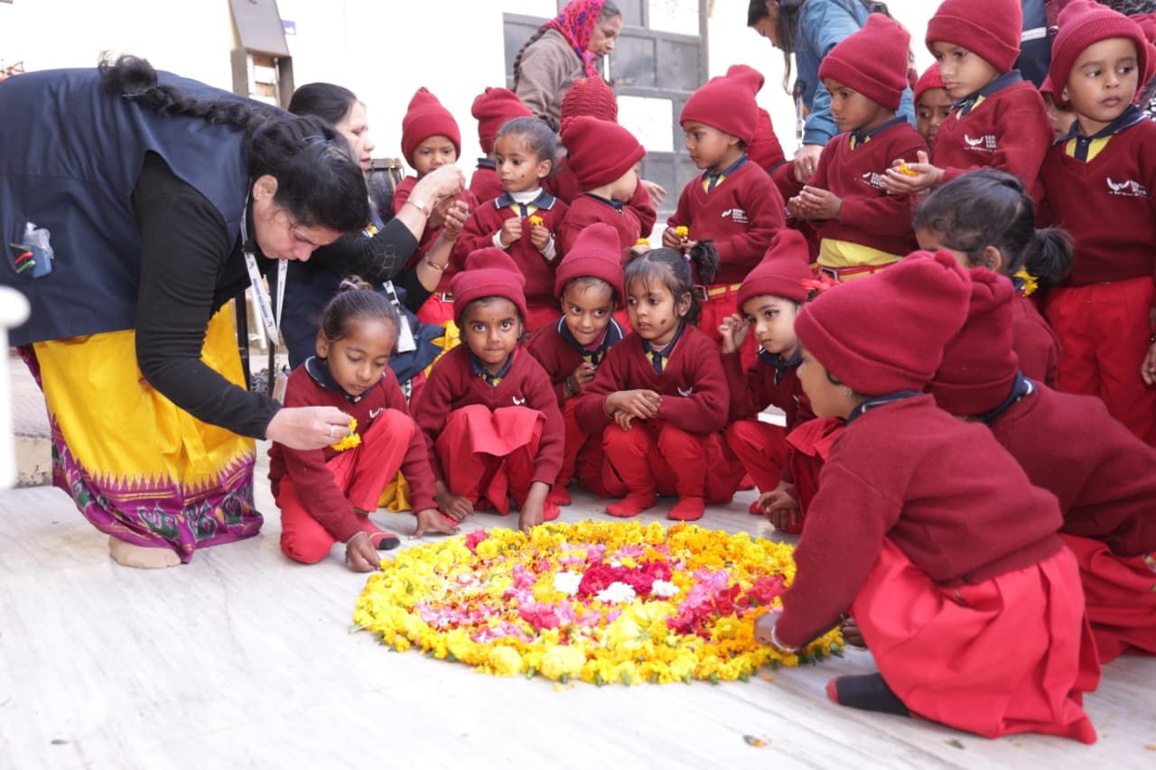 बसंत पंचमी के उपलक्ष्य में बच्चों ने विद्यालय परिसर स्थित माता सरस्वती मंदिर के प्रवेश द्वार पर पीले फूलों से आकर्षक रंगोली बनाई और माँ शारदे का श्रृंगार किया। पूरा परिसर पीले पुष्पों की खुशबू और बच्चों के उत्साह से सराबोर नजर आया।