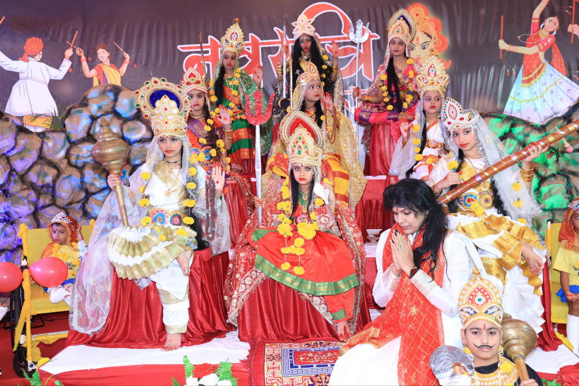प्रारंभ में संस्थापक कैलाश ‘मानव’ और निदेशक वंदना अग्रवाल ने अतिथियों का पगड़ी,शाल, उपरणा और प्रतीक-चिह्न भेंट कर स्वागत किया। पूजन के दौरान कन्याओं के चेहरों पर खुशी झलक रही थी।