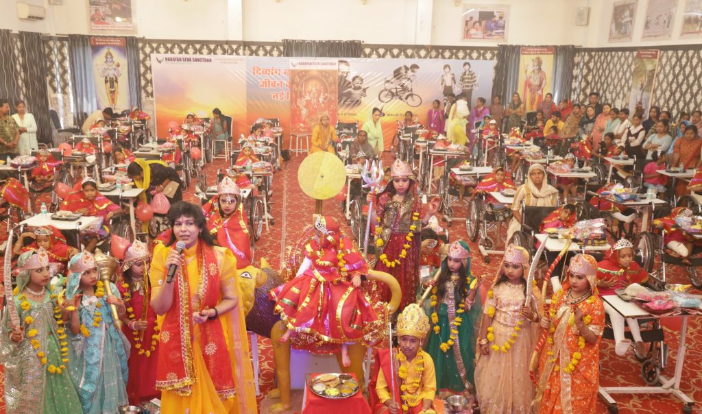 उदयपुर। दुर्गाष्टमी एवं रामनवमी के पावन अवसर पर नारायण सेवा संस्थान के सेवा महातीर्थ परिसर में गुरुवार को भक्ति, सेवा और संवेदनाओं का अनूठा संगम देखने को मिला। यहां मां दुर्गा के नौ स्वरूपों की विधिवत पूजा-अर्चना के साथ 501 दिव्यांग कन्याओं का श्रद्धा एवं सम्मान के साथ कन्या पूजन किया गया।