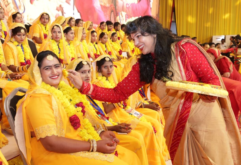 प्रातः 11:15 बजे सभी 51 जोड़े पीले परिधान में सजे-धजे, पीले फूलों से सुसज्जित हाड़ा सभागार के मंच पर अपने-अपने स्थानों पर विराजमान हुए। मानो पूरा परिसर पीले रंग की आभा में आशाओं और खुशियों का उत्सव बन गया हो।
