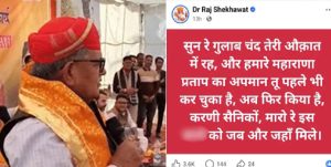 कटारिया के इस बयान को कुछ लोग महाराणा प्रताप के अपमान के रूप में ले रहे हैं। सोशल मीडिया पर करणी सेना के राष्ट्रीय अध्यक्ष राज शेखावत द्वारा दिए गए धमकीपूर्ण बयान ने विवाद को और तेज कर दिया। उन्होंने कटारिया को जान से मारने की धमकी देते हुए कहा, “जहां मिले मारो।” यह बयान सोशल मीडिया पर तेजी से फैल गया और कई लोग इसे समर्थन देने लगे, जिससे स्थिति और जटिल हो गई।