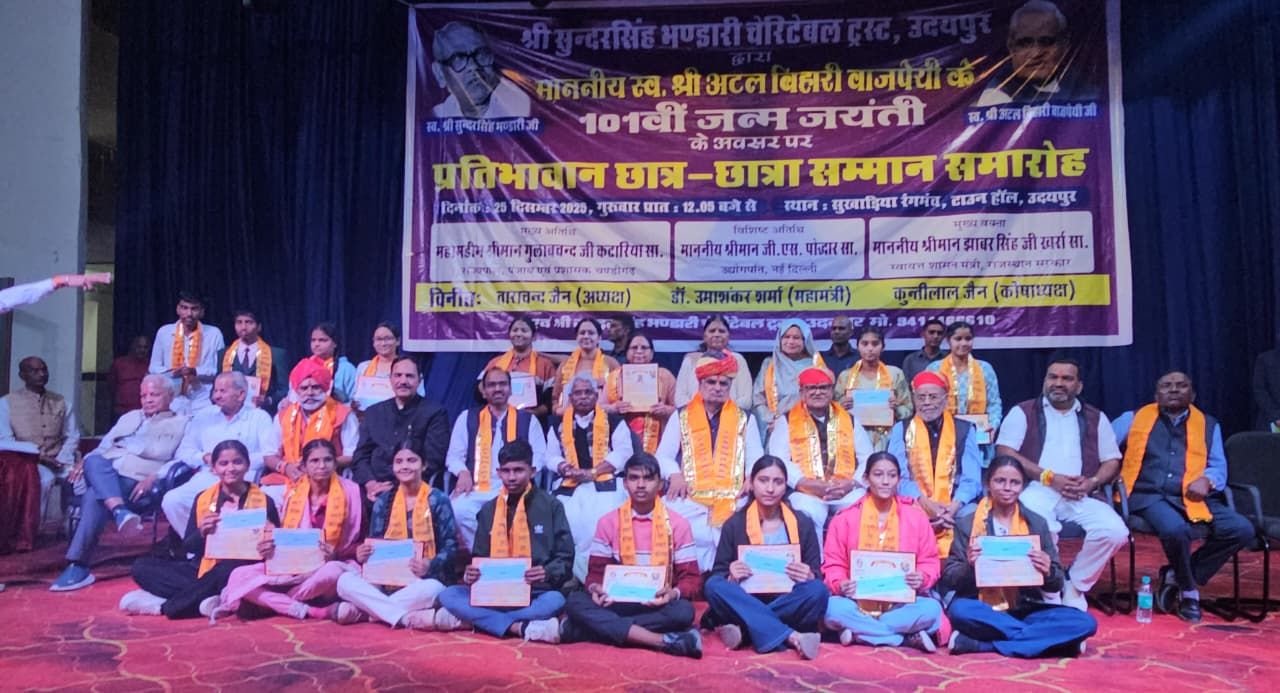 इन्हीं भावों के साथ गुरुवार को उदयपुर के सुखाड़िया रंगमंच पर ज्ञान, संस्कार और सम्मान का भव्य संगम देखने को मिला। श्री सुंदर सिंह भंडारी चैरिटेबल ट्रस्ट द्वारा आयोजित इस गरिमामयी समारोह में जिले के 445 प्रतिभावान विद्यार्थियों को सम्मानित किया गया।कार्यक्रम में उपस्थित पंजाब के राज्यपाल गुलाबचंद कटारिया ने भावुक शब्दों में कहा कि देश का भविष्य विद्यालयों की कक्षाओं में गढ़ा जाता है। शिक्षा केवल रोजगार नहीं, बल्कि व्यक्तित्व निर्माण की आधारशिला है। उन्होंने कहा कि वर्षों तक इतिहास को तोड़-मरोड़ कर प्रस्तुत किया गया, जिससे हमारी युवा पीढ़ी अपने गौरवशाली अतीत से दूर होती चली गई। अब समय है कि हम हाड़ी रानी, पन्नाधाय जैसे चरित्रों से युवाओं को जोड़ें।