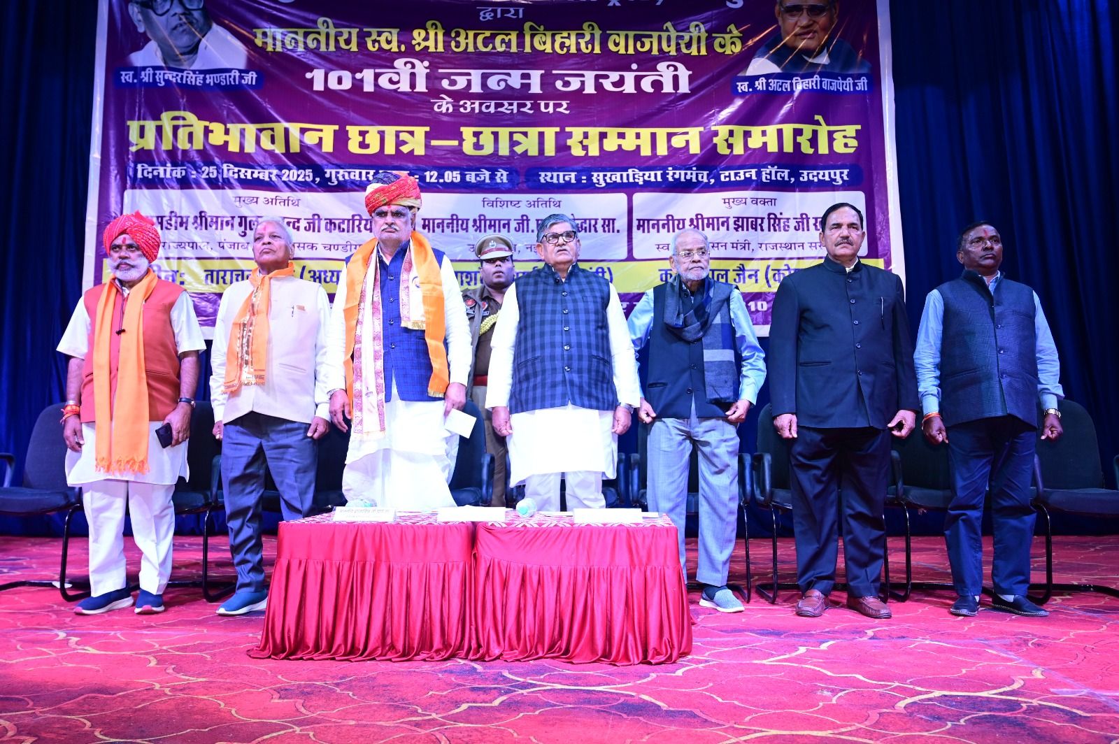 उन्होंने कहा कि पिछले 13 वर्षों से निरंतर विद्यार्थियों को सम्मानित करने का उद्देश्य यही है कि देश की प्रतिभा को पहचान मिले और समाज उन्हें आगे बढ़ने का संबल दे। “जब युवा अपने माता-पिता, समाज और राष्ट्र के प्रति उत्तरदायित्व निभाने लगते हैं, तभी सच्चा राष्ट्र निर्माण होता है।”राज्यपाल ने भारत रत्न अटल बिहारी वाजपेयी एवं सुंदर सिंह भंडारी को नमन करते हुए कहा कि उनका जीवन सेवा, त्याग और राष्ट्रभक्ति का जीवंत उदाहरण है। उन्होंने कहा कि कार्यकर्ता विचारों के लिए जीता है, लाभ के लिए नहीं। यही भावना आज देश को आगे बढ़ा रही है।विधायकों-सांसदों से भावुक अपील