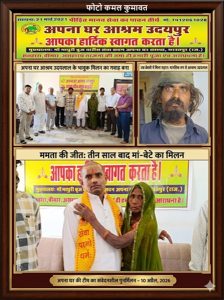 आश्रम की टीम की इस संवेदना ने यह सिद्ध कर दिया कि अगर सेवा का भाव सच्चा हो, तो बिछड़े हुए अपनों को फिर से मिलाया जा सकता है। आज उदयलाल सिर्फ अपने घर ही नहीं लौटे, बल्कि एक मां को उसका खोया हुआ संसार वापस मिल गया है।