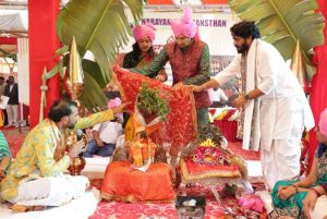 कार्यक्रम की शुरुआत गणपति एवं कलश स्थापना के साथ हुई। इसके बाद विवाह से पूर्व की सभी पारम्परिक रस्में—तोरण, हल्दी, मेहंदी और बिंदौली—धार्मिक विधि-विधान के अनुसार सम्पन्न की गईं। विवाह आयोजन में श्रद्धालुओं और संस्थान से जुड़े लोगों की उत्साहपूर्ण भागीदारी देखी गई।