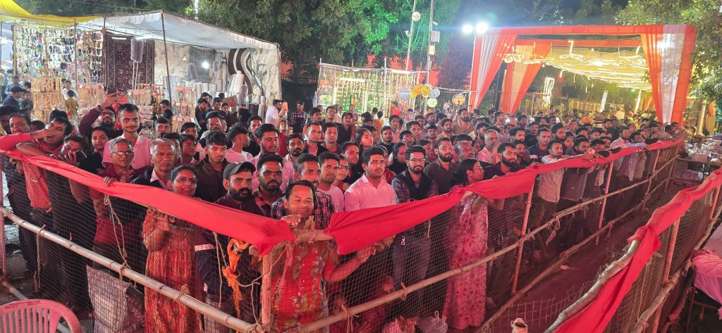 उदयपुर। नगर निगम दीपावली मेले के सांस्कृतिक कार्यक्रमों के पांचवें दिन का माहौल पूरी तरह भक्तिमय रहा। लक्खा उर्फ़ लखबीर सिंह और स्वाति मिश्रा की भजन प्रस्तुतियों ने मेले को राम-कृष्ण भक्ति के रंग में रंग दिया।नगर निगम मेला संयोजक दिनेश मंडोवरा ने बताया कि बुधवार को शहर विधायक ताराचंद जैन, वंडर सीमेंट डायरेक्टर परमानंद पाटीदार, निवर्तमान उप महापौर पारस सिंघवी, समाजसेवी गजपाल सिंह, निवर्तमान सांस्कृतिक समिति अध्यक्ष चंद्रकला बोलिया और आयुक्त अभिषेक खन्ना ने मां सरस्वती एवं श्री गणेश की प्रतिमा के सम्मुख दीप प्रज्ज्वलित कर कार्यक्रम का शुभारंभ किया।नगर निगम आयुक्त अभिषेक खन्ना ने बताया कि शाम भक्ति और शक्ति के नाम रही। स्वाति मिश्रा ने “राम आयेंगे फेम” भजनों से कार्यक्रम की शुरुआत की, जिनमें “राम आयेंगे आयेंगे”, “मंगल भवन अमंगल हारी” और “खाटू वाले श्याम” शामिल थे। इसके बाद लक्खा ने अपनी प्रस्तुति से दर्शकों को मंत्रमुग्ध कर दिया। “बिगड़ी मेरी बना दे”, “दरबार तेरा पहाड़ों में” और “मै खड़ा द्वारे तेरे” जैसे भजनों ने पूरे मेले को भक्तिमय और प्रेममय वातावरण में बदल दिया।दर्शक झूमते हुए भजनों का आनंद लेते रहे। आयुक्त अभिषेक खन्ना ने बताया कि अधिकांश समय दर्शक खड़े होकर नाचते और गाते रहे। लक्खा 50 वर्षों से भजन गा रहे हैं, जबकि स्वाति पिछले 3 वर्षों से सार्वजनिक कार्यक्रमों में भजन प्रस्तुत कर रही हैं। दोनों कलाकारों ने भजनों में रीमिक्स और अन्य आधुनिक प्रयोगों पर रोक लगाने की जरूरत पर भी जोर दिया।
