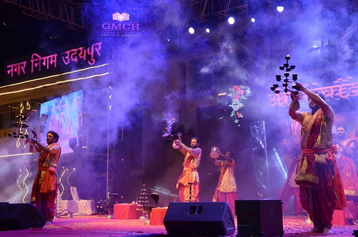 उदयपुर। नगर निगम दीपावली मेले के अंतिम सांस्कृतिक दिन पर उदयपुर का वातावरण पूरी तरह से धार्मिक और सांस्कृतिक रंगों से भर गया। बनारस और उज्जैन के कलाकारों द्वारा प्रस्तुत मां गंगा की महाआरती और महाकाल की भस्म आरती ने दर्शकों को भावविभोर कर दिया।
