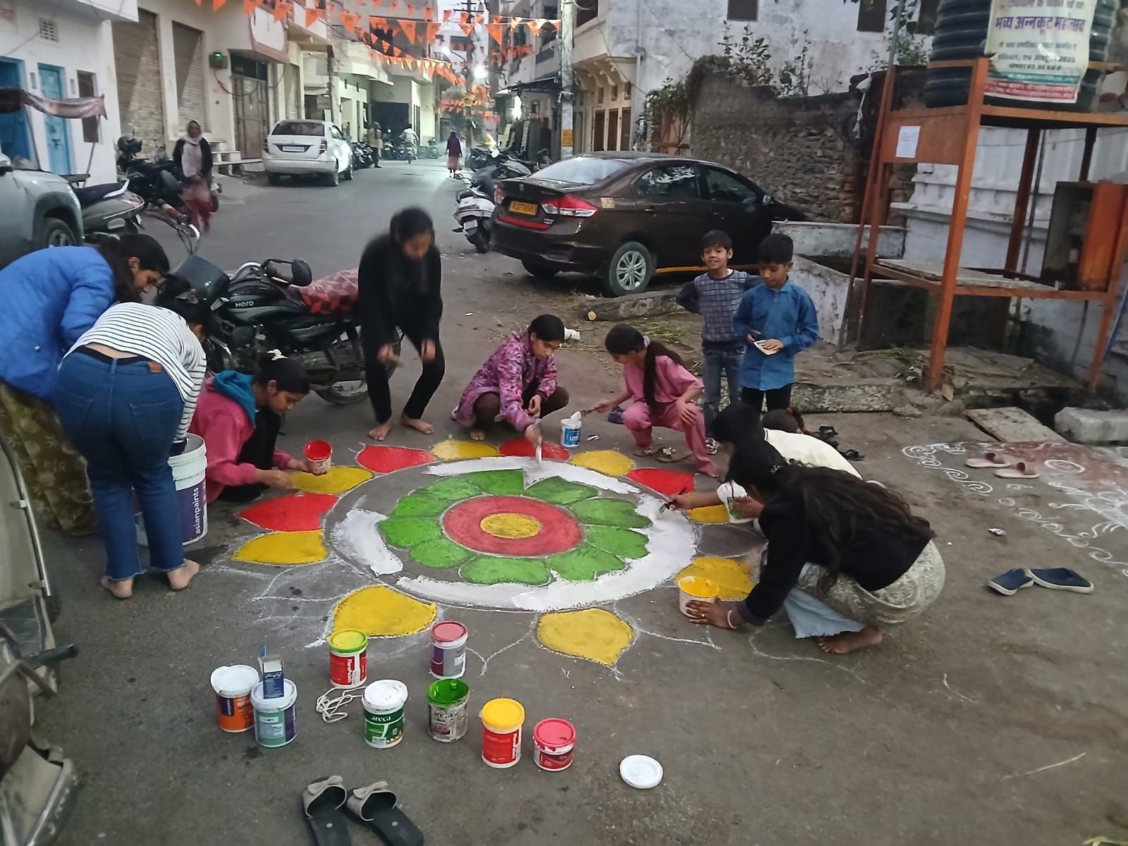 आयड़ बस्ती के हर कोने को केसरिया झंडों और फर्रियों से सजाया गया है। स्थानीय महिलाओं ने चौराहों पर आकर्षक रंगोलियां बनाकर उत्सव का वातावरण तैयार किया है।