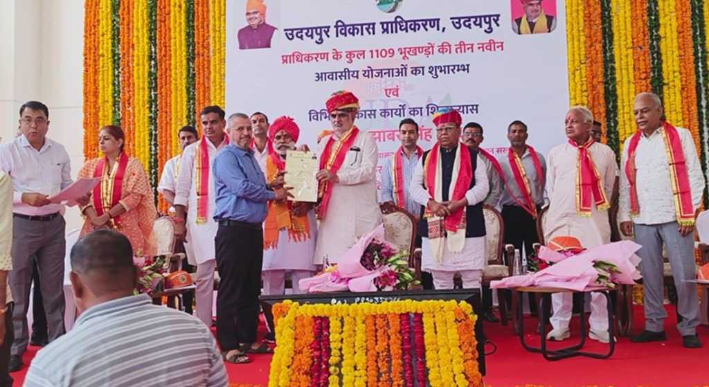 मंत्री खर्रा ने रिमोर्ट बटन दबाकर विभिन्न विकास कार्यों और परियोजनाओं का शिलान्यास किया। आर्थिक दृष्टि से कमजोर, अल्प आय, मध्यम आय और उच्च आय वर्ग के लिए साउथ एक्सटेंशन सेक्टर-ए में 550 भूखण्ड, कलड़वास में उद्यम विहार में 311 और राजस्व गांव नौहरा में नान्देश्वर एनक्लेव में 248 सहित कुल 1109 आवासीय भूखण्डों की आवासीय योजना लॉटरी-पुस्तिका का विमोचन और शुभारम्भ किया। वहीं, एनएच-8 बलीचा तिराहे से कुंडाल तक प्रोफाइल करेक्शन एवं डामरीकरण (7.12 करोड़) राजस्व ग्राम ढिकली में मास्टर प्लान की 60 फीट पुराना आरटीओ सड़क सुदृढ़ीकरण कार्य (4.27 करोड़),  प्राधिकरण की मीरा नगर योजना, भुवाणा में 100 फीट रोड जोड़ने वाली मास्टर प्लान सड़क (3.21 करोड़) कलड़वास आवासीय योजना में आंतरिक सड़कें (2.90 करोड़), दक्षिण विस्तार योजना में आंतरिक सड़कों के निर्माण कार्य ब्लॉक-सी (3.10 करोड़),़ सापेटिया, समता नगर, बीजी नगर से मानसरोवर कॉलोनी तक नाला (4.09 करोड़), राजस्व ग्राम भुवाणा में डागलियों के तालाब तक खजुरिया नाला (2.93 करोड़) एकलिंगपुरा गांव से आयड़ नदी तक नाला (2.68 करोड़), परशुराम चौराहे से जनकपुरी तक नाला निर्माण (1.74 करोड़) और माली कॉलोनी जेसी बॉस सड़क पर स्थित आरसीए वाणिज्यिक योजना बी-ब्लॉक में टेकरी से राड़ाजी तक की 60 फीट सड़क निर्माण (59 लाख) शामिल हैं।