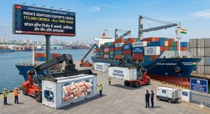 नई दिल्ली। प्रधानमंत्री नरेंद्र मोदी के ‘विकसित भारत-2047’ के विजन की ओर कदम बढ़ाते हुए भारत के मत्स्यपालन क्षेत्र ने अब तक का सबसे बड़ा रिकॉर्ड कायम किया है। वित्त वर्ष 2025-26 में भारत का समुद्री खाद्य पदार्थ निर्यात 72,325.82 करोड़ रुपये (8.28 बिलियन अमेरिकी डॉलर) के सर्वकालिक उच्च स्तर पर पहुँच गया है।