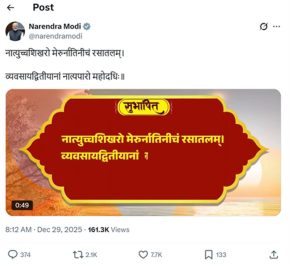 प्रधानमंत्री ने 29 दिसंबर 2025 को सोशल मीडिया मंच ‘एक्स’ पर यह सुभाषित साझा किया—