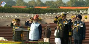नई दिल्ली। देश आज अपना 77वां गणतंत्र दिवस पूरे गौरव और हर्षोल्लास के साथ मना रहा है। राजधानी दिल्ली के कर्तव्य पथ पर आयोजित होने वाले मुख्य समारोह की शुरुआत प्रधानमंत्री नरेंद्र मोदी द्वारा नेशनल वॉर मेमोरियल पर पुष्पचक्र अर्पित करने के साथ हुई। पीएम ने 26,621 वीर शहीदों को नमन किया और दो मिनट का मौन रखकर उन्हें श्रद्धांजलि दी।