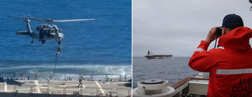 पकड़े जाने के डर से जहाज़ ने वेनेज़ुएला की बजाय अटलांटिक की ओर रुख किया, लेकिन अमेरिका और ब्रिटेन समेत कई देशों की हवाई और समुद्री निगरानी जारी रही। अंततः अमेरिकी जहाज़ USCGC मुनरो ने इसे घेरकर ज़ब्त कर लिया।