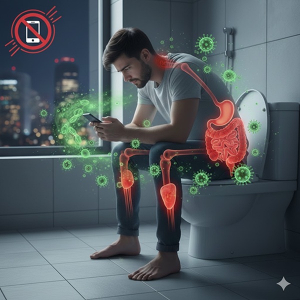 Keywords: Mobile overuse, Toilet health risks, Piles, Digestion problems, Musculoskeletal pain, Cervical pain, Bacterial infection, Mental stress,