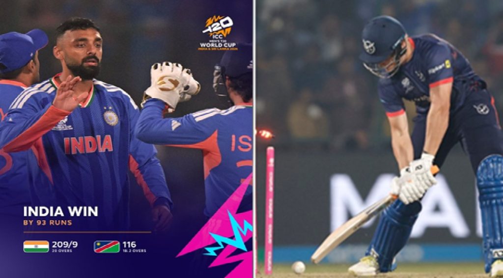 Namibia’s chase never gained momentum. Their batting line-up struggled against India’s disciplined bowling attack and were bowled out for 116 in 18.2 overs.