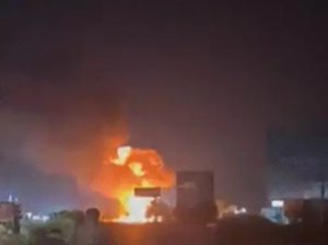 रात 10:55 बजे | लगातार धमाके जारी, खेतों तक गिरे सिलेंडर। प्रत्यक्षदर्शियों के अनुसार, एक के बाद एक गैस सिलेंडर फटते रहे। कई सिलेंडर धमाके के बाद खेतों में जा गिरे, जिससे आसपास के गांवों में डर का माहौल है। लोगों को सुरक्षित स्थानों पर भेजा जा रहा है।
