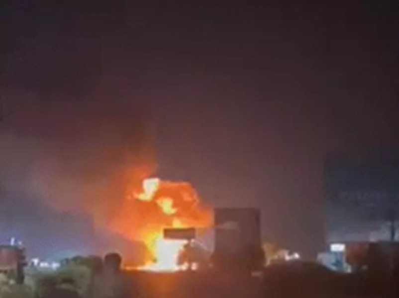 रात 10:35 बजे | ट्रक में धमाकों से हाईवे दहला।