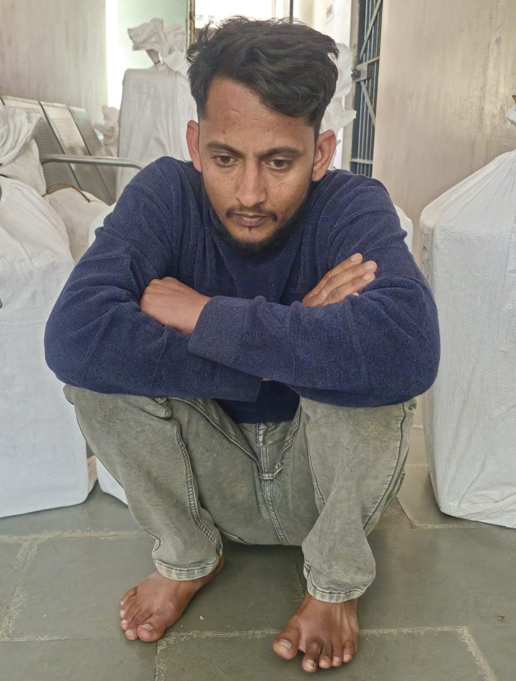 27 दिसंबर 2025 की रात, पुलिस टीम पुण्या ट्रांसपोर्ट कॉर्पोरेशन, बलीचा पहुंची। जैसे ही पुलिस जाप्ता गोदाम के भीतर दाखिल हुआ, वहां मौजूद एक युवक पुलिस को देखकर घबरा गया और भागने की कोशिश करने लगा। पुलिस ने तत्परता दिखाते हुए उसे दबोच लिया। पूछताछ में उसने अपना नाम पुष्करराज डांगी (31), निवासी डिमडा, थाना वल्लभनगर बताया और खुद को पार्थ इंटरप्राइजेज का फर्म मालिक बताया।