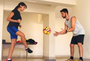 Nora shared a throwback video from 2017 on Instagram, in which she is seen training intensely and learning football skills under the guidance of her coach.
